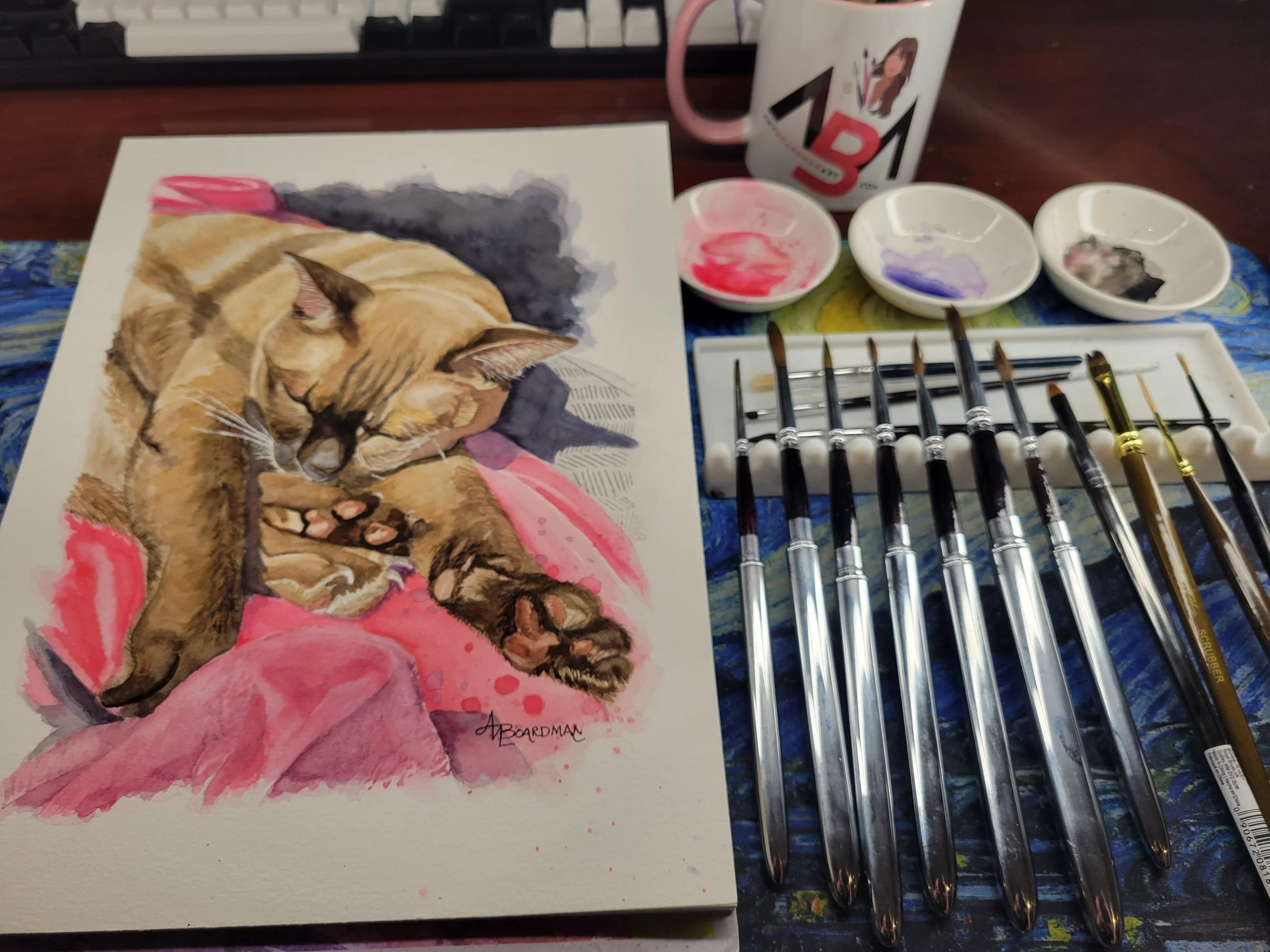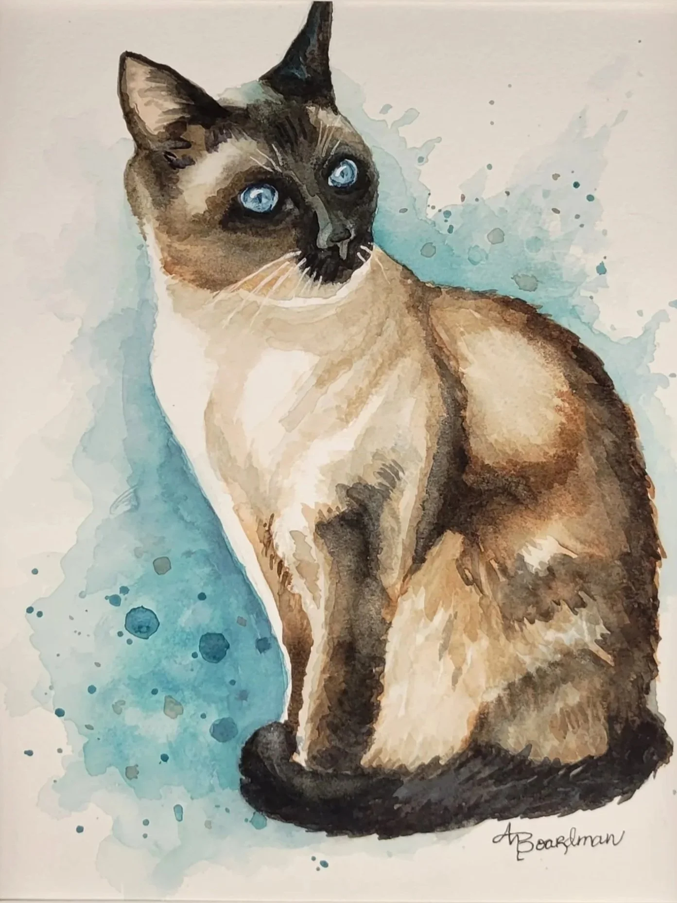 Every painting has a story—especially a 14-year-old Siamese on a pink blanket.