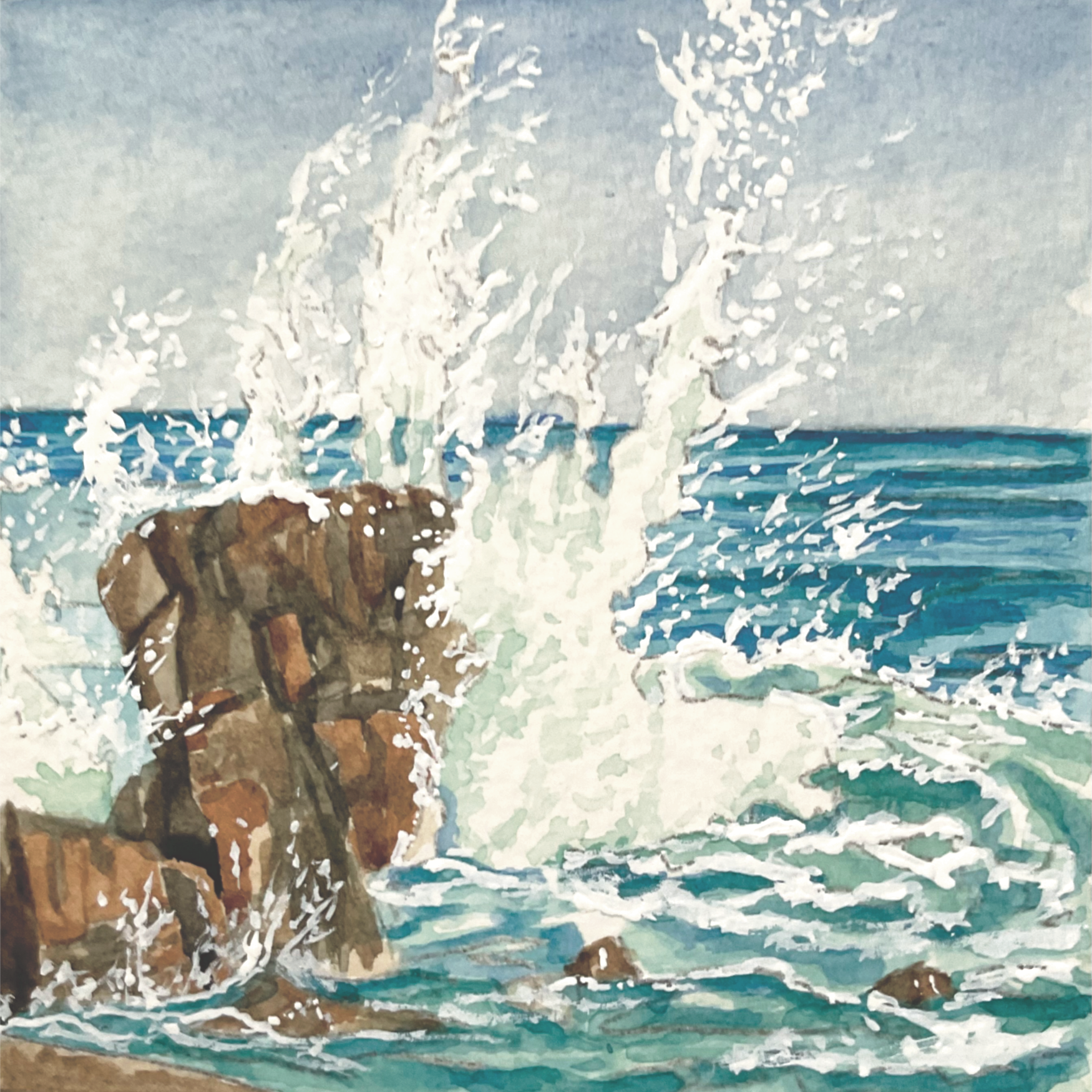 Seaside Splashes | 6 x 6 Acrylic on Wooden Panel | Amy Boardman